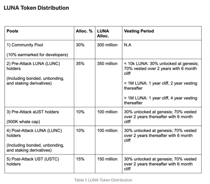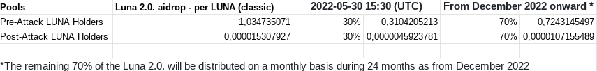 - The genesis airdrop of LUNA 2.0 (30%) will be distributed today, May 30th 2022, at 17:30 CET